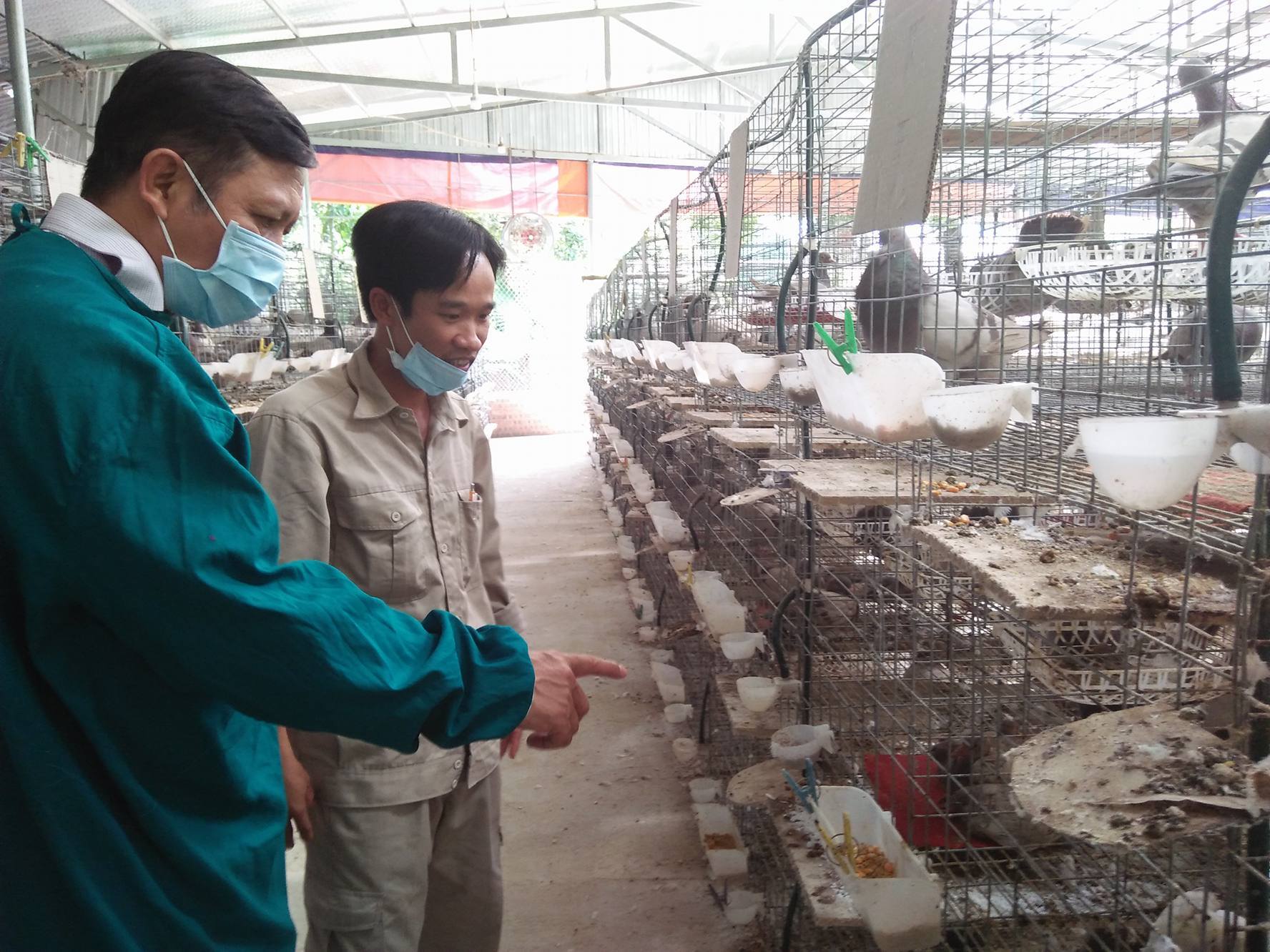 Nguyễn Khắc Văn, Phó Chủ tịch Hội ND tỉnh tham quan mô hình nuôi chim bồ câu Pháp tại trang trại gia đình anh Phan Minh Hồng xã Thụy Liễu, huyện Cẩm Khê.